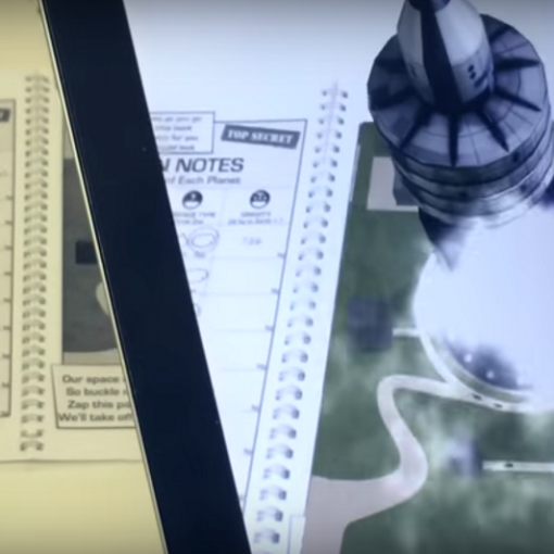 Signage information is projected on walls and other architectural surfaces in ways that blend as deeply as possible with the physical surface materials.