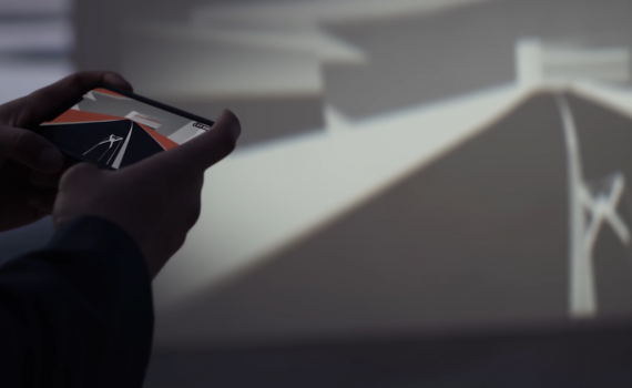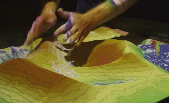 Interact with sound as a new medium. Visual projections match the wavelength of the sounds and take into account the physical environment. Interacting with the visual projections changes the sound.