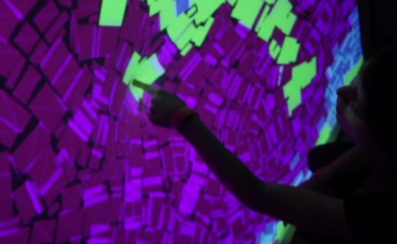 Pre-generated projection is combined with choreography such that the dancer appears to interact with the computer graphics.